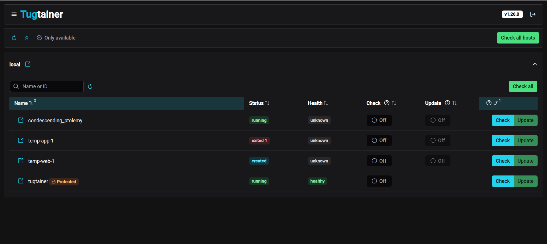 Tugtainer gives you a proper web dashboard to manage container updates. Think Portainer, but focused specifically on the update workflow.