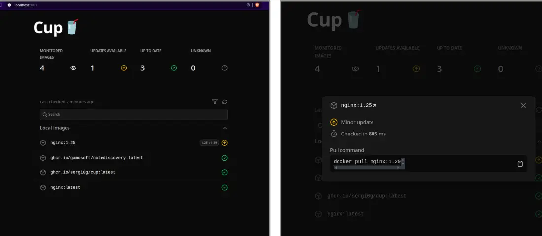 Cup might be the fastest update checker on this list. It claims to scan 58 images in 3.7 seconds on a Raspberry Pi 5!