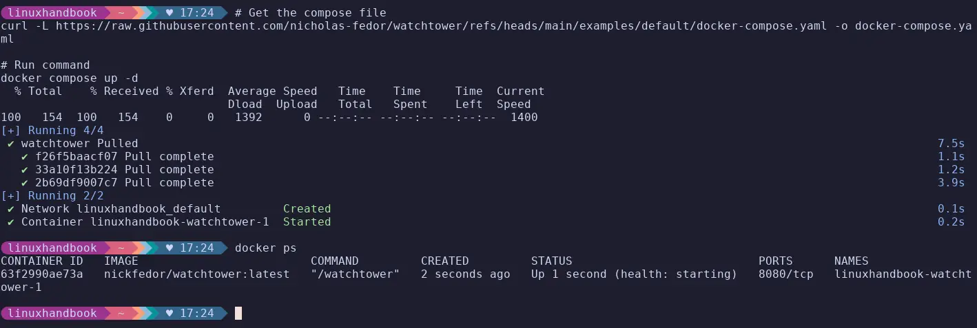 curl -L https://raw.githubusercontent.com/nicholas-fedor/watchtower/refs/heads/main/examples/default/docker-compose.yaml -o docker-compose.yaml